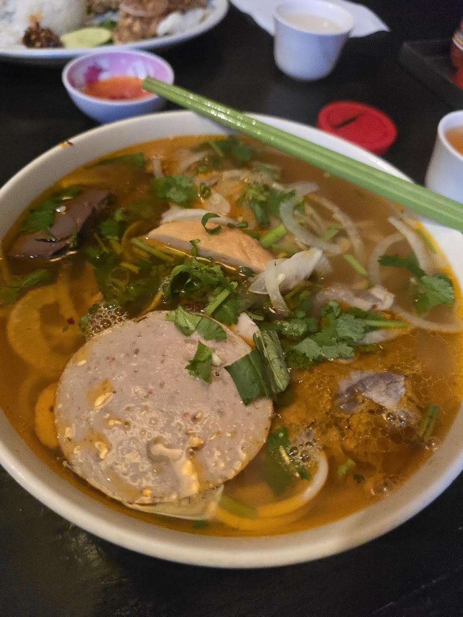 Bun Rieu - A tomato-based noodle soup with crab or pork, offering a balance of sweetness, tanginess, and umami flavors.