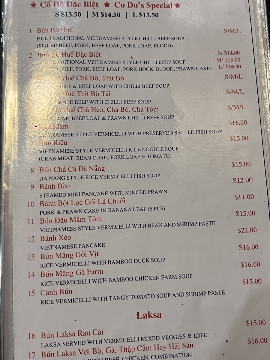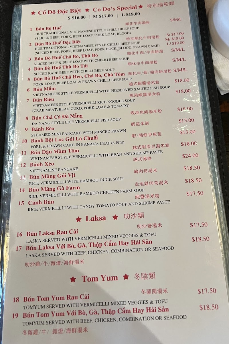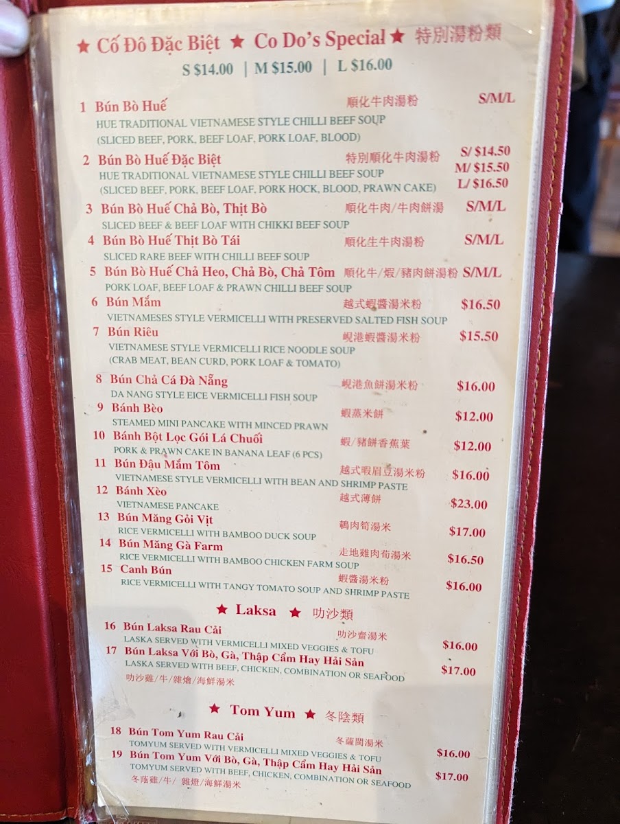 Vietnamese style rice vermicelli soup. Crab meat, bean curd, pork loaf, and tomato.