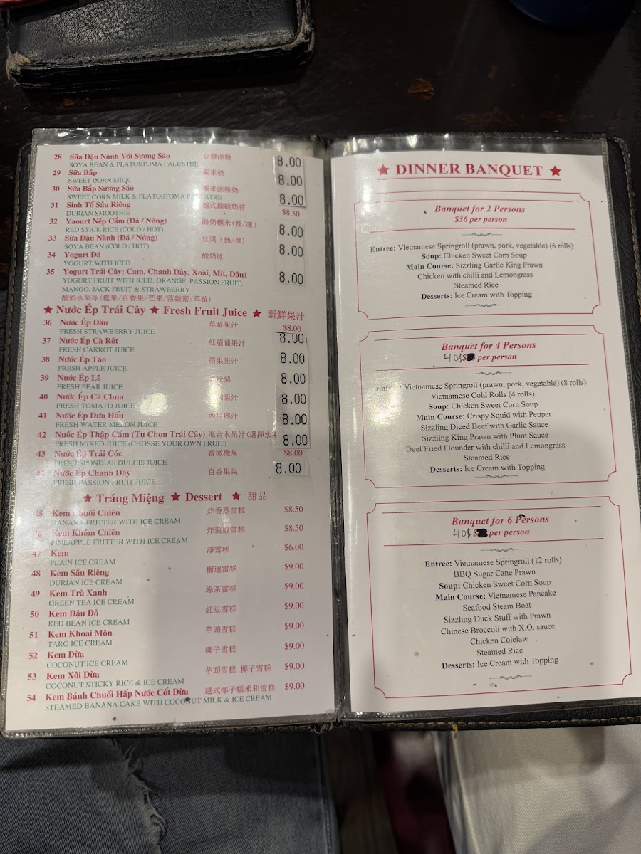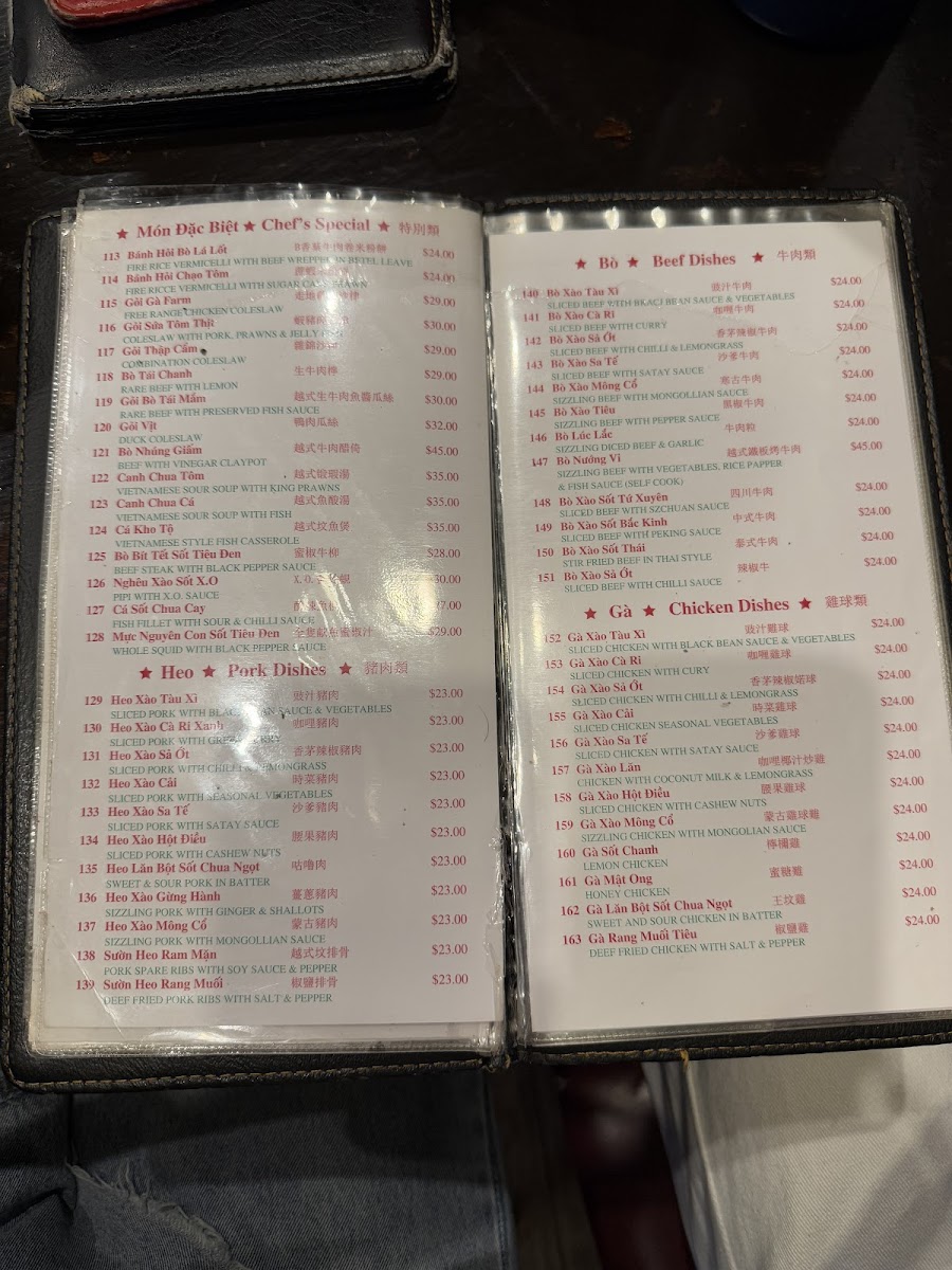 Vietnamese sour soup with fish, Vietnamese style fish casserole, sliced chicken with lemongrass and chilli, combination hot pot and steamed rice.